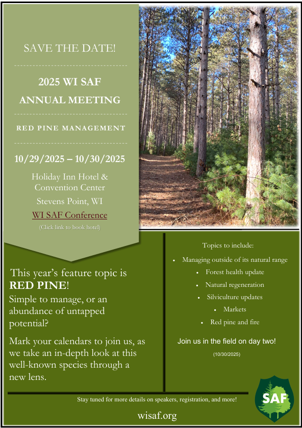 The 2025 State Meeting has a date, location, and theme. Please join us in spreading the word about our fall conference where we will be discussing Red Pine in Wisconsin.